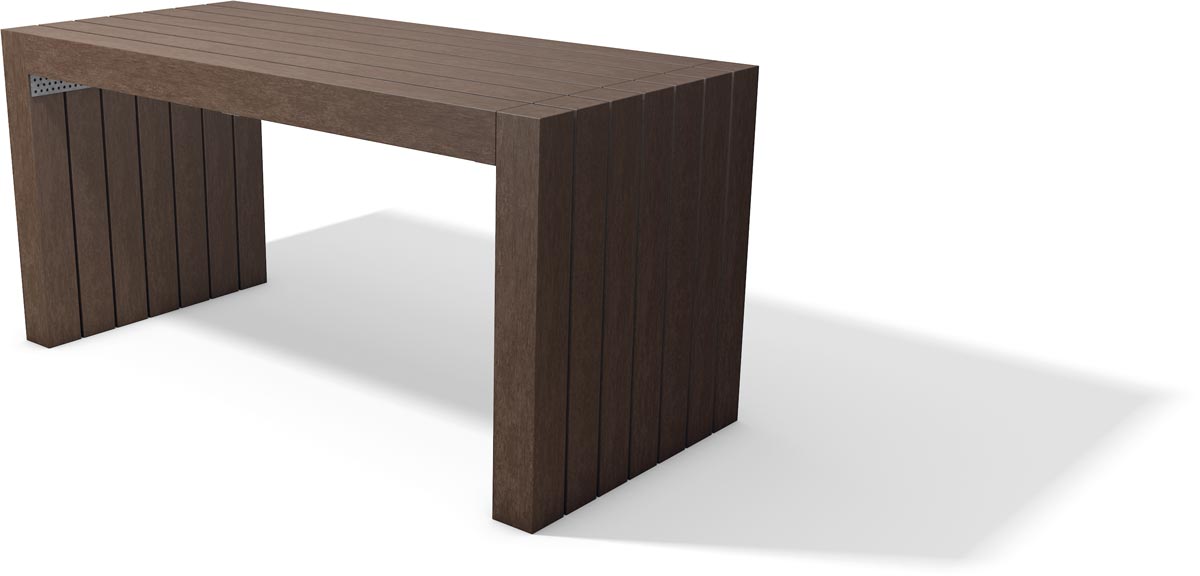 Il est également possible de compléter ce mobilier urbain par un banc sans dossier pour créer un salon de jardin complet.