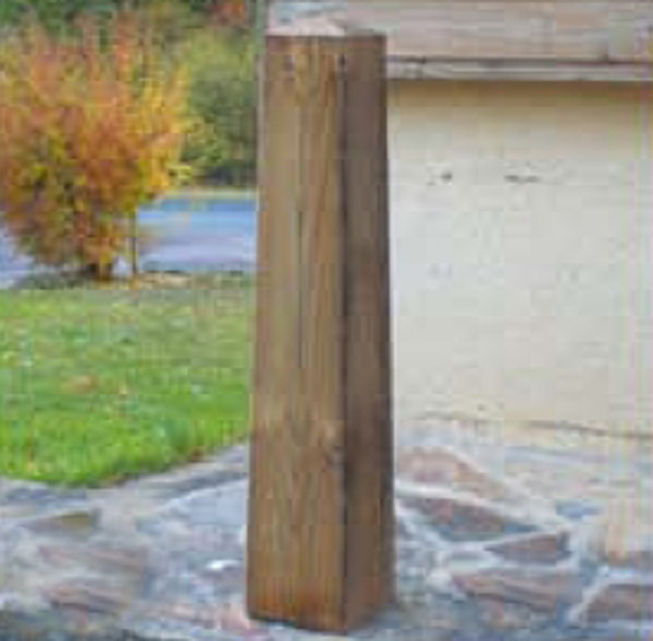 - Pour la pose, il suffira d’enterrer et sceller de 40 cm. Le hors sol de cette borne en bois pyramidale est de 0.60 m.