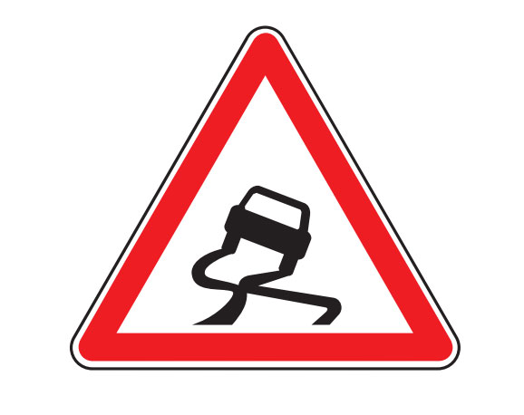 Le panneau de signalisation A4 indique la proximité d’une section de chaussée particulièrement glissante.