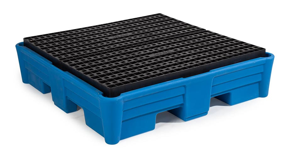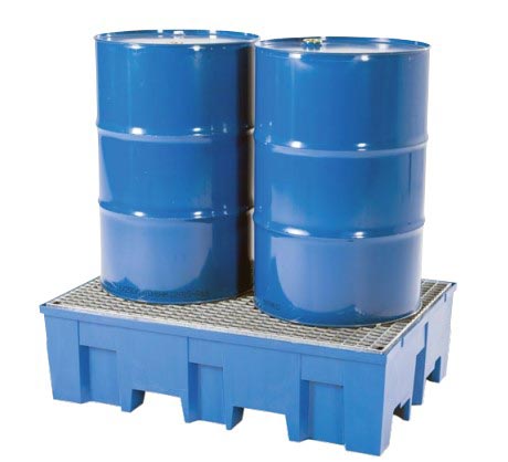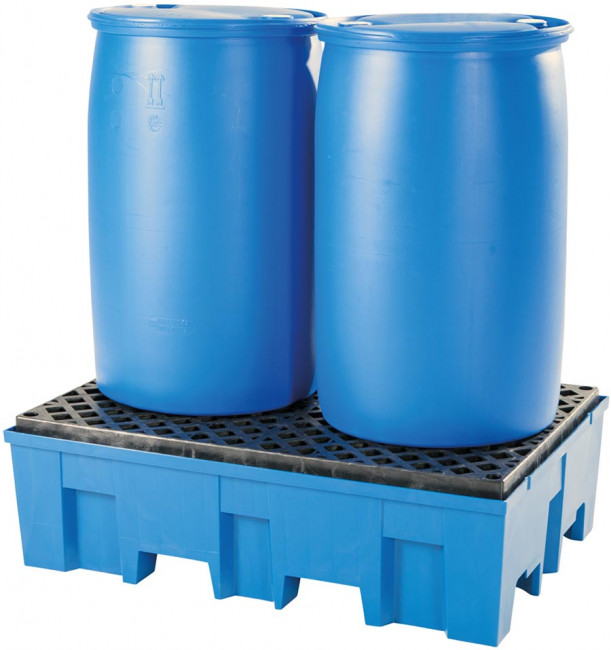 Bac de rétention plastique pour fûts 220 à 520 L - Avec ou sans caillebotis