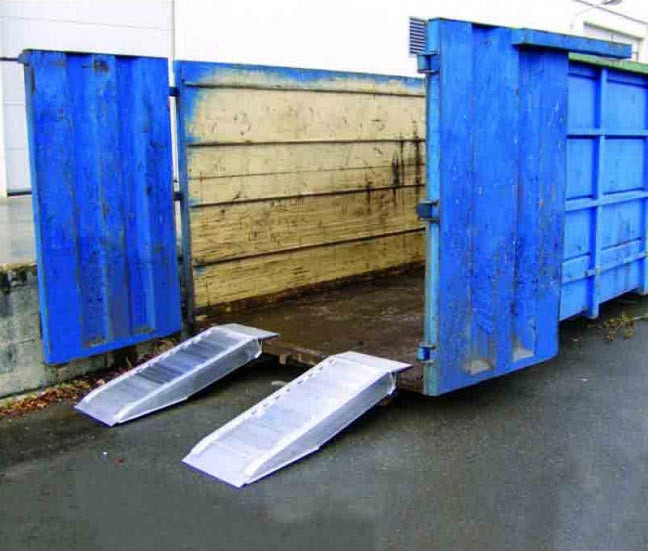 Cette rampe pour faibles dénivelés en aluminium est spécialement conçue pour le chargement et le déchargement des bennes au sol.