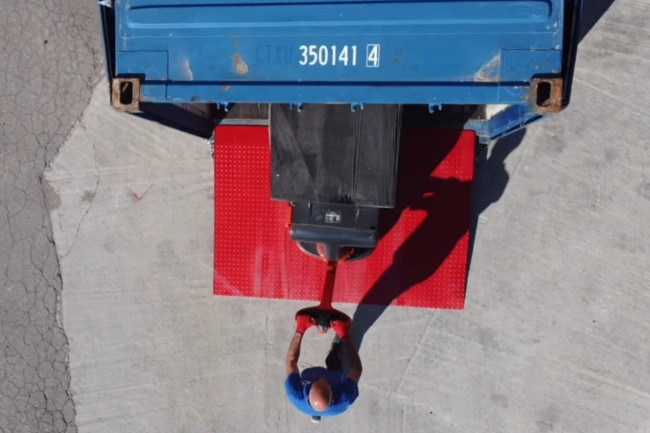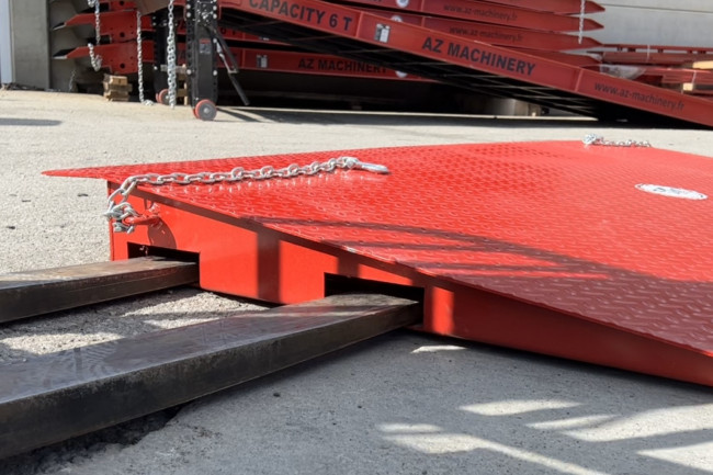 Rampe d’accès pour conteneur au sol, déplaçable pour des opérations de chargement / déchargement rapides de conteneurs. Posée à même le sol, cette rampe en acier permet de pénétrer rapidement à l'intérieur des conteneurs avec tout type de moyen de manutention (chariot élévateur, transpalette, gerbeur, et tout autre matériel roulant) Cette rampe se déplace facilement grâce aux deux fourreaux de fourche disposés sur ses deux faces latérales à l'aide d'un chariot élévateur. Sa constitution simple et robuste lui assure une capacité de 8 000 kg tout en restant un modèle économique. La galvanisation à chaud sert à protéger la structure de la rampe de la corrosion en la recouvrant d’une couche de zinc, ce qui augmente la durée de vie dans des environnements extérieurs difficiles.