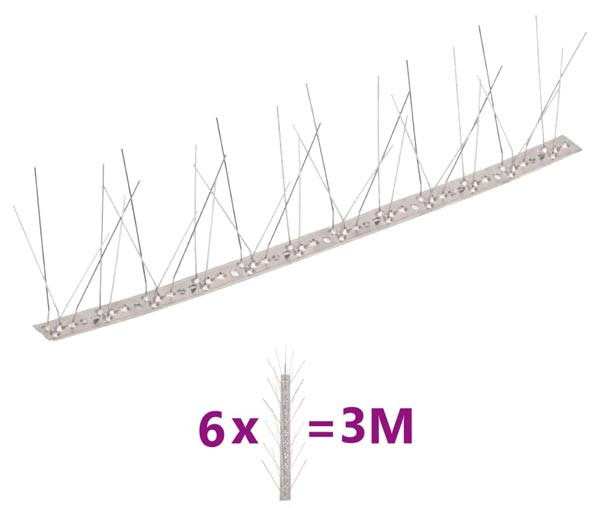 | Réf. TC :919355133 | Pics anti-oiseaux en inox | 3 | 6 pointes à 2 rangées | 115 | 50 x 2,5 | -