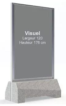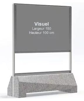 Le support permet d’accueillir des visuels imprimés sur support rigide type aluminium composite (Dibond 3 mm). Chaque structure peut présenter 2, 3 ou 4 faces d’affichage selon les modèles. Les visuels sont :