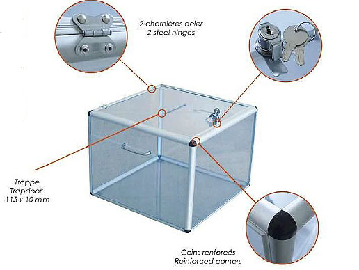 Ces urnes, fabriquées en plexiglas, sont parfaitement adaptées pour des