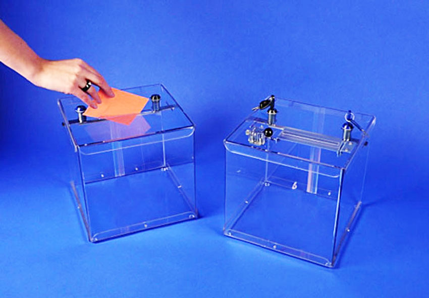 Cette urne peut recevoir jusqu'à 300 bulletins. Transparente, elle est parfaite pour les jeux concours et les élections professionnelles.