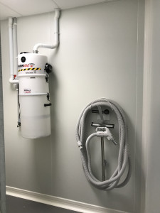 Installée dans une pièce technique, votre centrale d'aspiration est reliée à un réseau de tuyaux en PVC antistatique. Différentes prises d'aspiration réparties judicieusement dans votre blanchisserie / lingerie (zone salle, zone propre,...) sont raccordées à ce réseau.