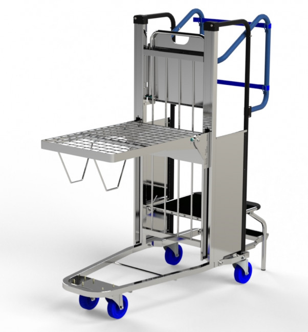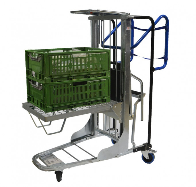 Dotée d'un plateau de 700 x 500 mm, ce chariot est équipé d'un fond constant qui descend automatiquement sous le poids des produits.