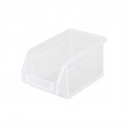 Ce bac à bec en plastique transparent est empilable, ce qui permet de structurer les espaces de rangement verticalement sans perdre en accessibilité.