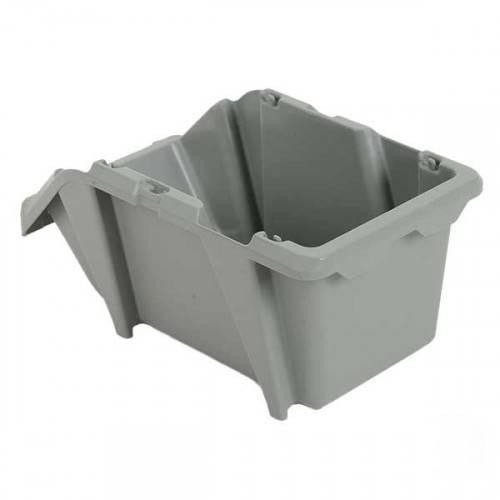 Empilable, ce bac à bec robuste se superpose pour créer des tours de rangement sur établis ou étagères.