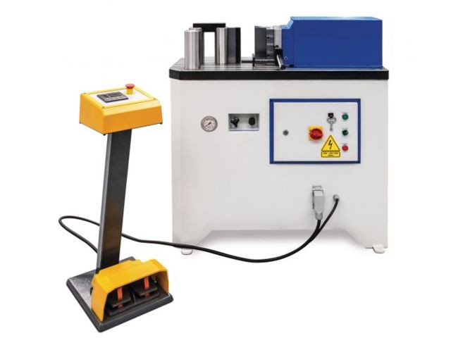 Conçue pour être particulièrement robuste, cette presse à cintrer hydraulique est dotée d’une commande manuelle par deux pédales pour la marche avant et la marche arrière.