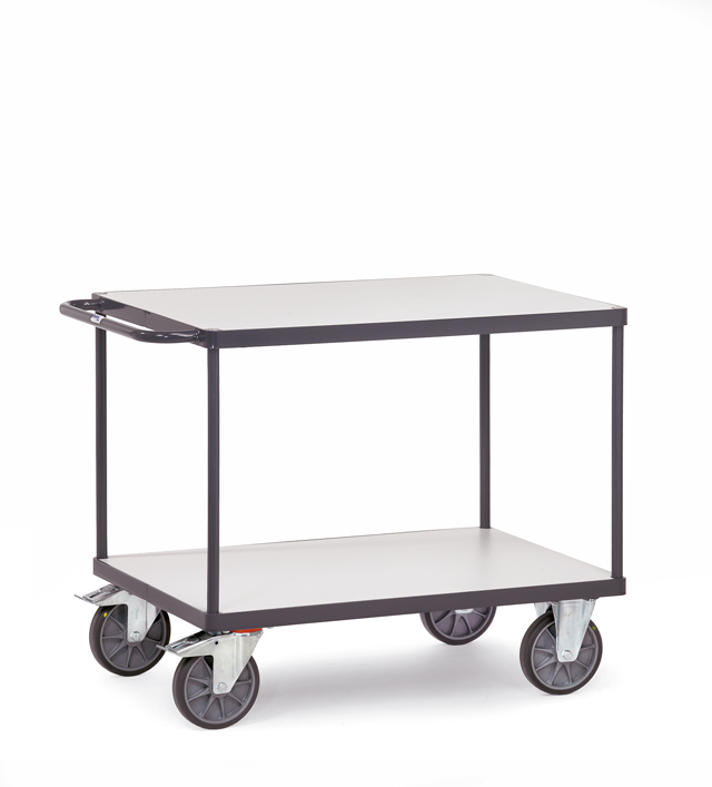 Équipé de 2 roues pivotantes et 2 fixes à bandage TPE-ESD (Élastomère thermoplastique), conductrices d´électricité, moyeu à roulement à billes de précision.