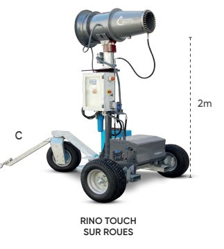Si la mobilité est essentielle pour votre application, le Canon Brumisateur Rhino peut être équipé de roues pneumatiques pour une facilité de déplacement.