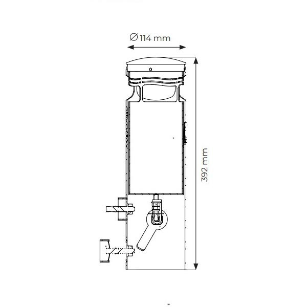 Compact (diamètre 114 mm, hauteur 420 mm) et mural, il libère l’espace au sol et limite l’encombrement dans les lieux de passage.