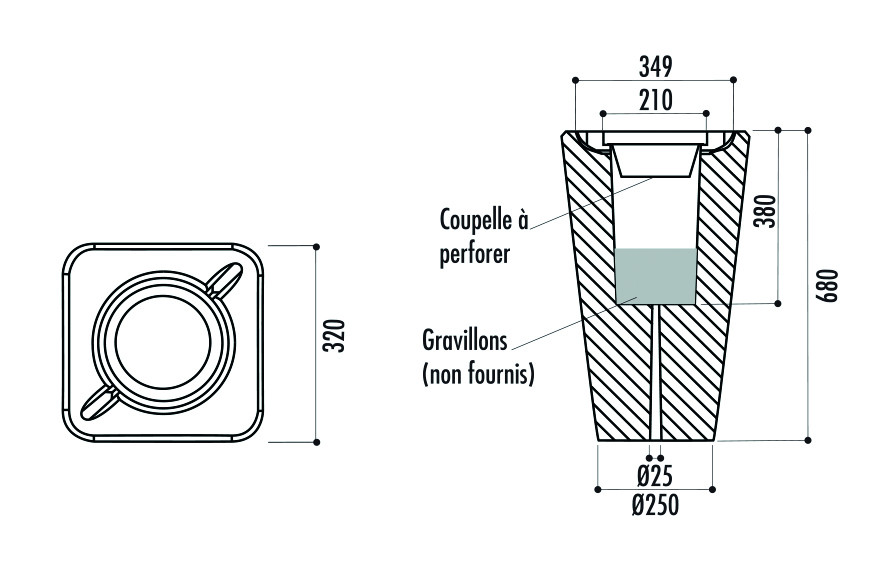 - À remplir de gravillons (non fournis) pour le drainage des eaux