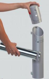 Il est conçu pour résister aux aléas climatiques et à un usage fréquent. Son seau intérieur, d’une capacité d’environ 1,4 L, est facilement accessible grâce à une tête amovible verrouillable par clé.