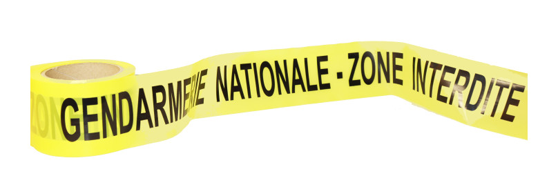 Polyéthylène Largeur : 75 mm Longueur : 250 m Épaisseur : 35µ- microns Message : Gendarmerie Nationale - Zone interdite