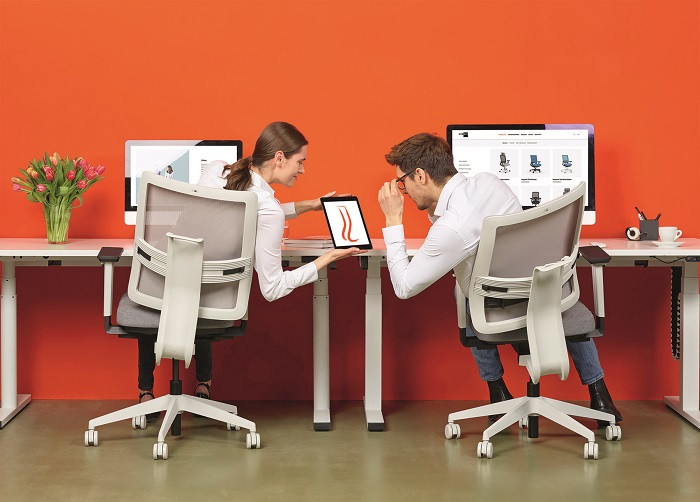 Disponible en noir ou en télégris, le fauteuil offre bien plus qu'un simple mouvement synchrone longitudinal.