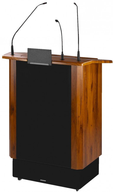 Ce pupitre professionnel de conférence amplifié est conçu pour assurer une transmission parfaite de discours, colloques et conférences.