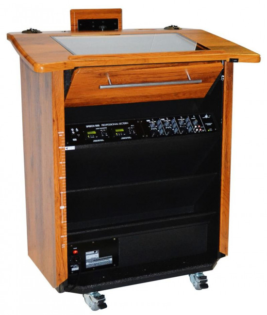 - Pupitre professionnel avec système audio amplifié intégré sans fil, réglable en hauteur