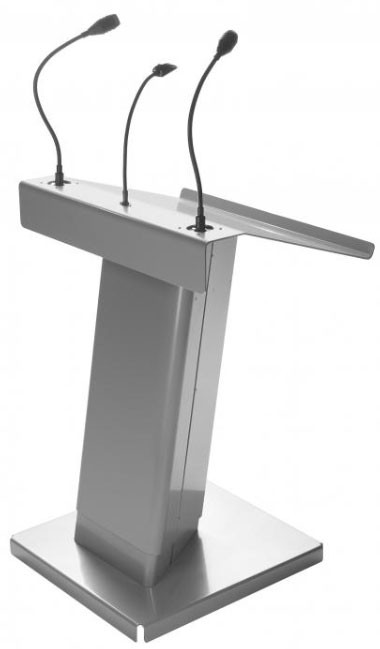 - Pupitre qui permet un ajustement à plusieurs paliers pour une adaptation précise à la taille de l'orateur