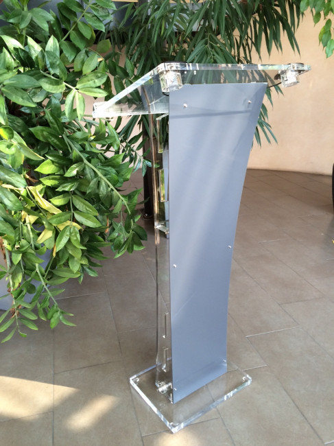 Le pupitre de conférence plexiglas à embase micros est un mobilier au design épuré dont le devant en imitation aluminium offre un aspect hautement esthétique.