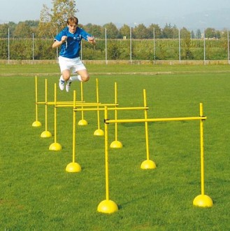 Conçu pour les écoles de football, ce kit complet gradué permet les exercices d’apprentissage les plus pratiqués : haies réglables, slalom, sauts, mini buts&he