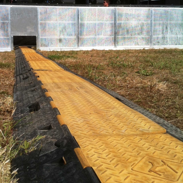 Nos passages de câbles 4 canaux en caoutchouc naturel et polyéthylène sont particulièrement adaptés pour les câbles de gros diamètre, circuits hydroliques, distribution électrique. Mais ils conviennent tout aussi bien pour les câbles sons, lumière et vidéo. Les couvercles anti-dérapants sont fixés par un système de charnière à glissière qui en garanti la solidité, le maintien et la facilité d’utilisation. Ils sont équipés d’une poignée pour en faciliter l’utilisation. Ils résistent aussi bien au passage d’une foule qu’à celui d’un semi-remorque.