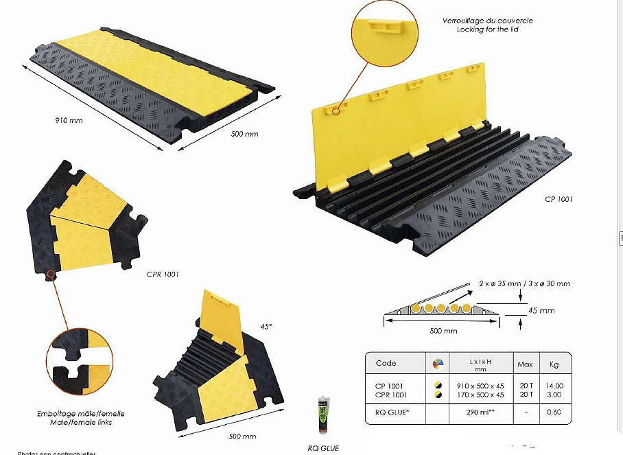 Réf. TC : 960021310Protège câbles 20 T 910 x 500 x 45 12