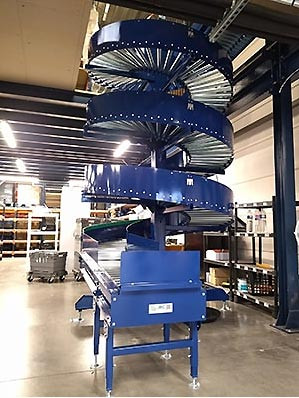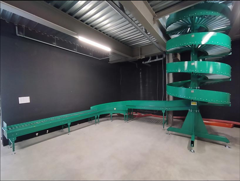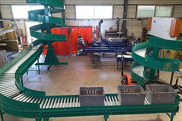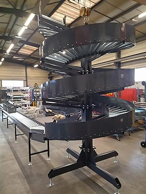 Convoyeur gravitaire hélicoïdal à rouleaux sur mesure