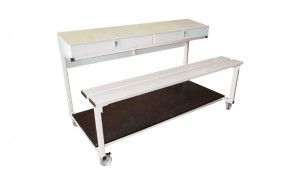 Elle est conçue avec 2 caissons et 4 roues pour une table de 3 personnes, aussi disponible pour 6 personnes avec 3 caissons et 6 roues.