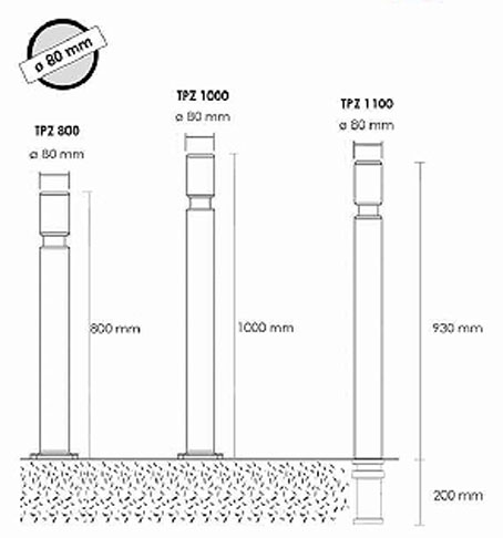 Ces poteaux peuvent se sceller directement dans le sol ou de manière amovible dans une base à sceller en polyuréthane.