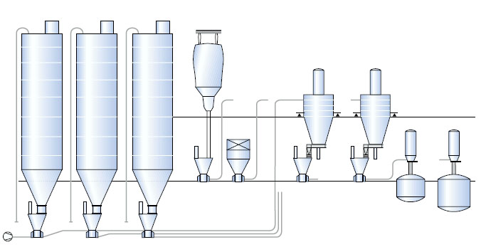 - Séparation air/produit au travers d‘un cycloneou d‘une trémie équipée d‘un filtre
