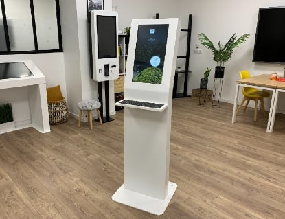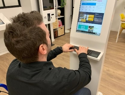 La borne tactile PMR avec clavier physique permet d’interagir avec tous les publics. Son clavier permet aux personnes à mobilité réduite de naviguer ou de remplir des champs afin de faire des recherches, répondre à des enquêtes de satisfaction et aux normes en vigueur.