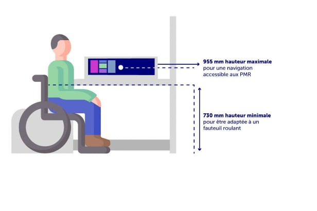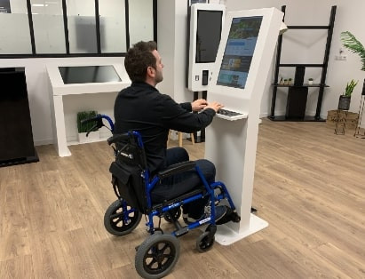 Nous sommes engagés dans la conception de bornes tactiles inclusives, adaptées pour toutes les Personnes à Mobilité Réduite. Nous fabriquons nos bornes en Lorraine, selon un cahier des charges bien précis pour répondre aux normes d'accessibilité. Nous prenons en compte toutes les typologies d'handicap dans l’élaboration de nos solutions (matériel & logiciel). Ce développement s’inscrit dans une démarche d’inclusion afin que toutes nos bornes PMR et nos applications soient utilisées de la manière la plus intuitive et simple pour tous les utilisateurs.