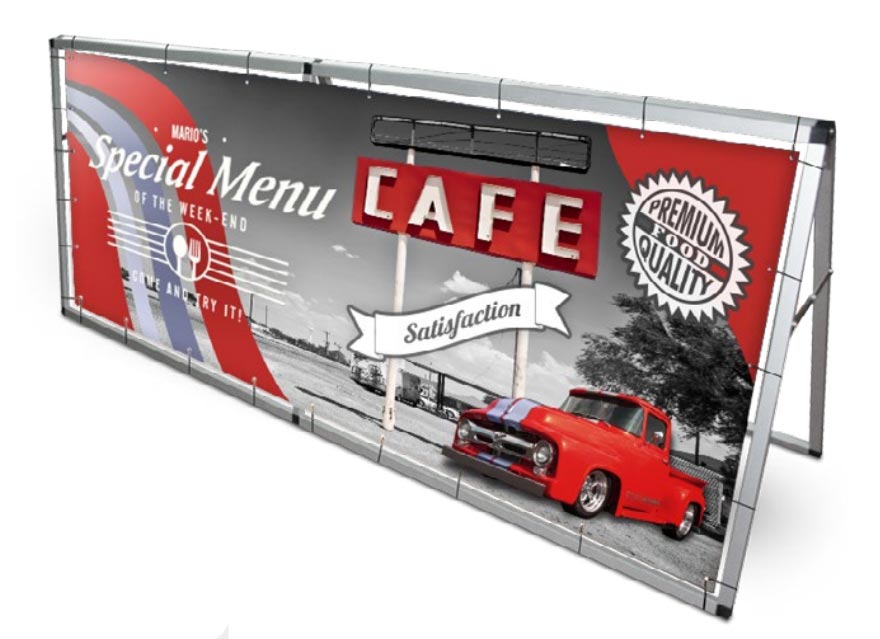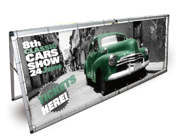 Ce support de communication accepte deux bâches publicitaires placées dos à dos.