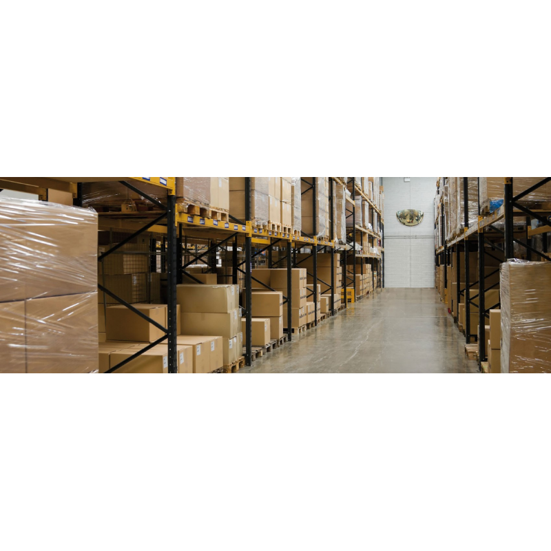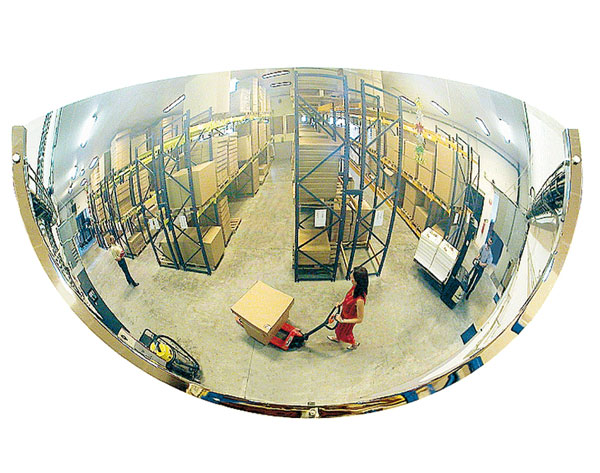 miroir hémisphérique Vialux est conçu pour contrôler la circulation d’une allée large sur toute sa longueur et d'éviter ainsi la collision entre chariots de manutention.