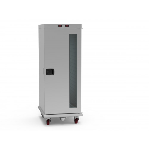 Avec sa capacité de 20 niveaux GN 1/1, son système de chauffe ventilé avec humidité réglable et son isolation intégrale, notre chariot chaud de liaison maintient vos plats à température homogène, entre 50 et 99 °C, tout au long du service.