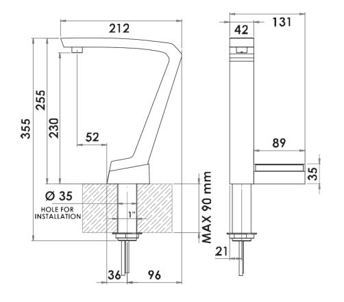 Puissance : 155 ou 210 W Débit : 15 L/h; 7 et 3 L en continu Robinet en chrome avec touches tactiles Bouton de sécurité pour l'eau chaude Dimensions : 260 x 235 x 407 mm