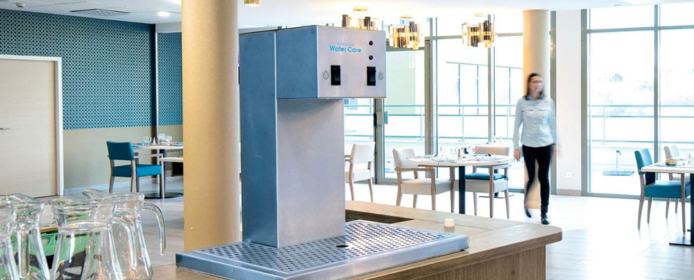 Son installation est rapide : une prise électrique, une arrivée d’eau et une évacuation suffisent pour bénéficier d’une eau potable en entreprise en continu.