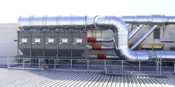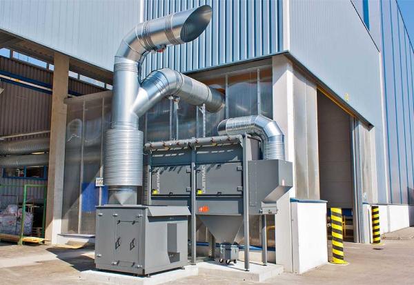 Ce système s’appuie sur des étages de filtration avancés pour purifier l’air pollué directement capté sur les machines de production via un réseau de gaines.