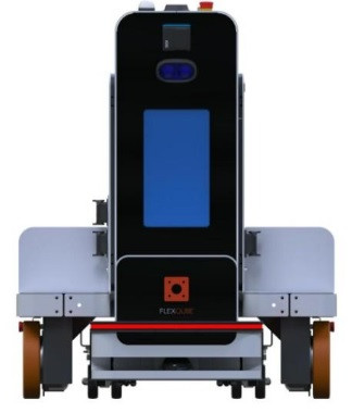 Ce robot mobile est spécialement conçu pour naviguer, assurer la sécurité et fournir l'alimentation électrique aux transporteurs motorisés qui se connectent à lui via une interface standardisée.