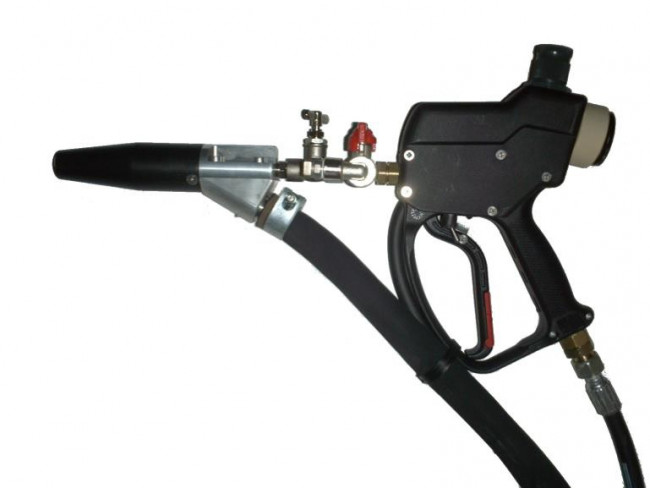 Un mélange air - eau microgranulat tendre est créé dans une chambre de mélange et expulsé dans un flux homogéne et tourbillonnant , appelé cône de projection.