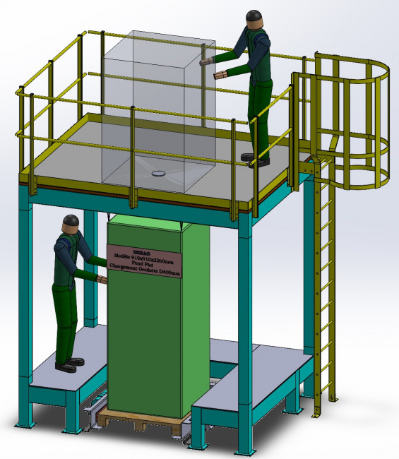 - Structure mécano- boulonnée avec poteaux de 120x120x5mm et plateforme sécurisée de 250Kgs/m² (Pré-montage en atelier en option et sur simple demande / Différents RAL / Existe pour 2, 3 et 4x Big-bags)