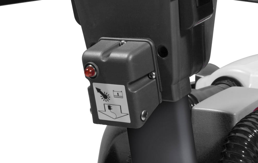 Elle est équipée de batteries gel 24V sans entretien et chargeur intégré, Châssis acier époxy.