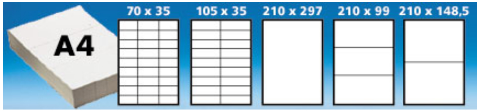 - Dimensions (mm) : de 70 x 35mm à 210 x 297mm
