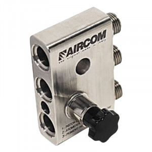 Le bloc est équipé de vannes automatiques qui interviennent au relâchement du pistolet pour arrêter automatiquement les flux d'air et de peinture : il peut être monté aussi bien à droite qu'à gauche.