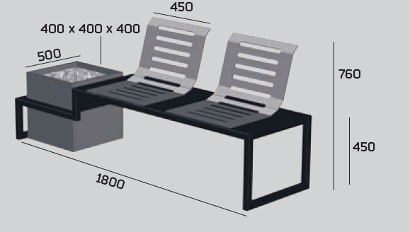 Ce banc élégant avec 2 assises individuelles et une jardinière intégrée est parfait à installer dans