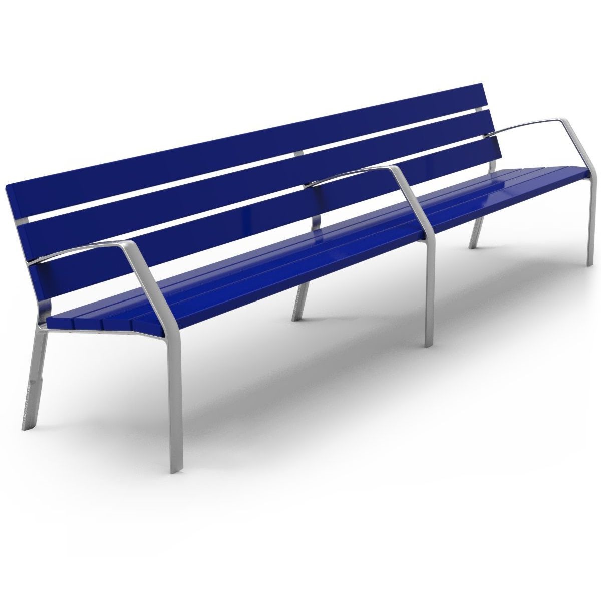 Livré prêt à monter, ce banc urbain peut être fixé au sol par des vis d’ancrage (non fournies).