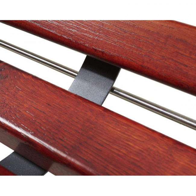 - Assise et dossier : chêne certifié PEFC épaisseur 40 mm, finition lasurée acajou ou chêne clair.